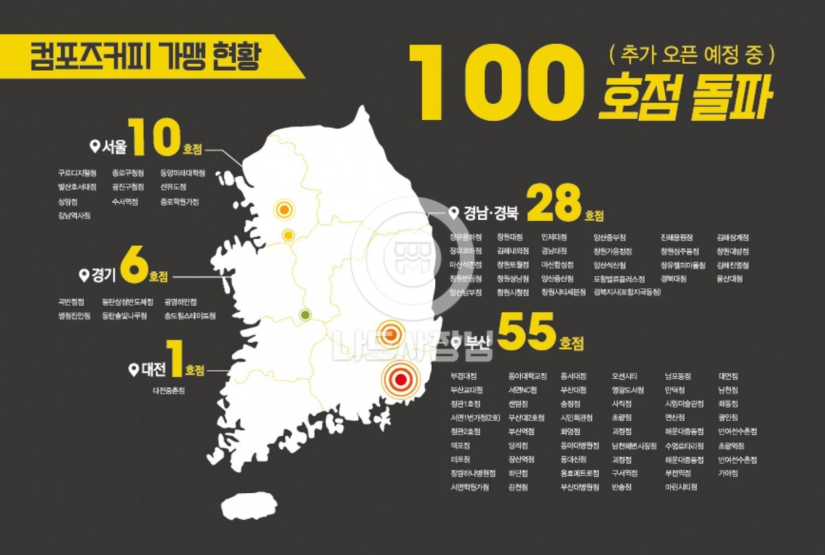 본사정보 상호 주) 제이엠커피컴퍼니 대표자 양재석 주소 부산 기장군 기장읍 당사로3길 16 (시랑리) . 브랜드정보 업태/업종 음료/디저트 커피 주력아이템 갓 볶은 신선한 커피 가맹점수 95 개 창업비용 6,453 만원 월평균 매출 2,500 만원 가맹점 평균수익률 30.0 % 가맹점 개설비용 가맹비 500 만원 인테리어(평당) 180 만원 보증금 로열티 20 만원 주방설치/집기 2,823 만원 기타 200 만원 교육비 200만원, 간판 600만원, 홍보물 150만원, 폴딩도어 160만원, 어닝 120만원, 오디오 100만원 총 소요비용 6,453 만원 브랜드 홍보영상