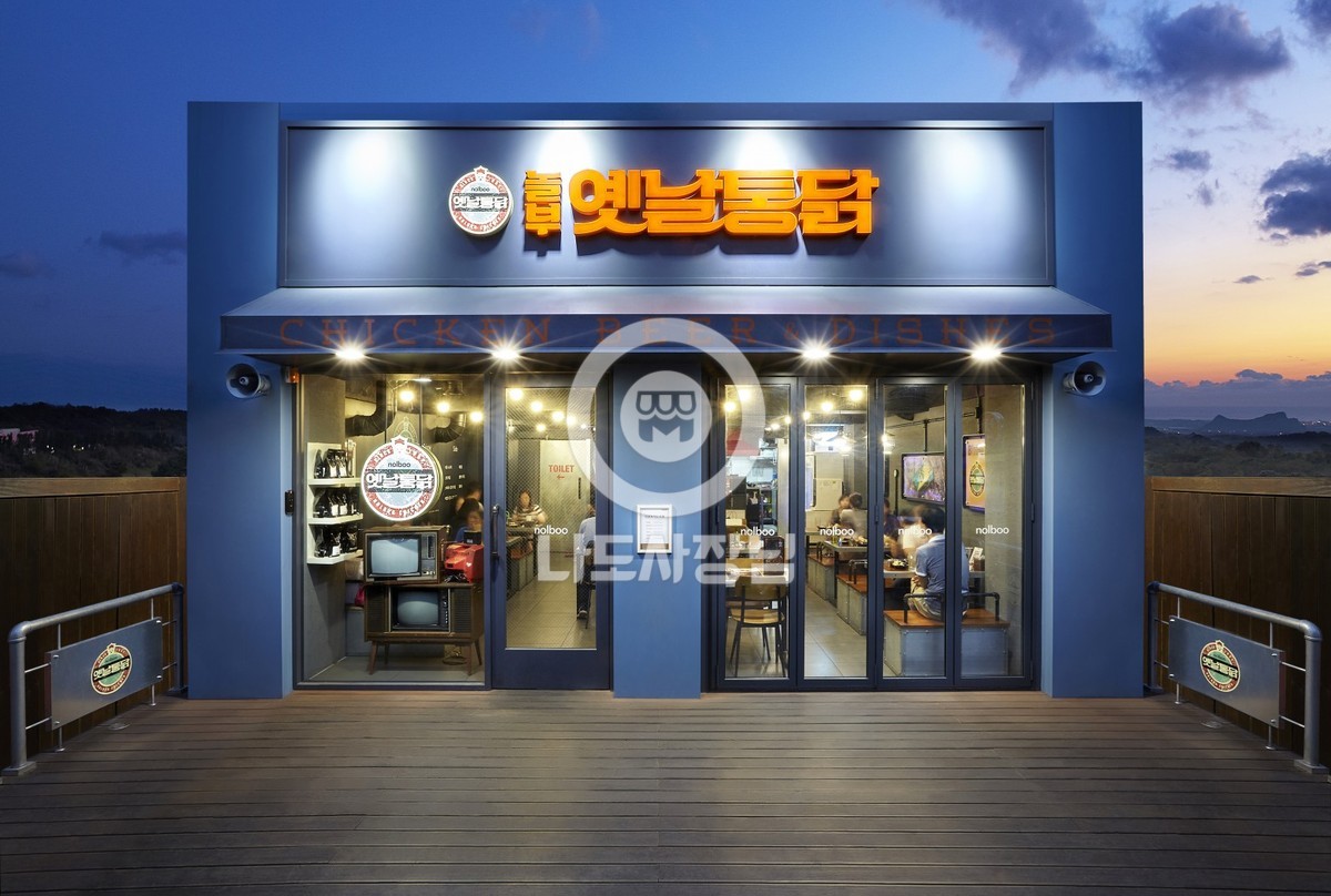 본사정보 상호 ㈜놀부 대표자 김영철 주소 경기도 성남시 중원구 도촌로8번길 30 . 브랜드정보 업태/업종 패스트푸드/주점 치킨 주력아이템 옛날통닭 가맹점수 44 개 창업비용 4,400 만원 월평균 매출 4,500 만원 가맹점 개설비용 가맹비 500 만원 인테리어(평당) 140 만원 보증금 200 만원 로열티 주방설치/집기 1,100 만원 기타 전기,가스,에어컨,테라스 등 총 소요비용 4,400 만원 브랜드 홍보영상