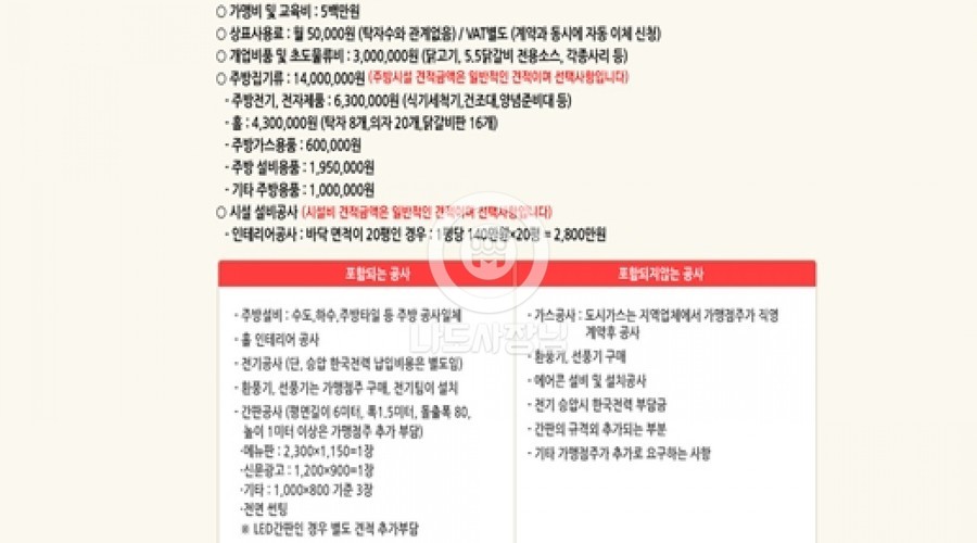 초기 부담금은 가맹비, 교육비, 보증금, 기타비용 합산액 입니다.